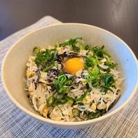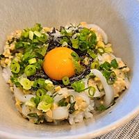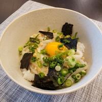 - 3 器にごはんをよそい、2をかけ、塩昆布と温泉卵をのせ、小ねぎを散らして完成です。