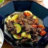 牛肉とトマトの炒め物のご紹介です。カレー粉のスパイシーな香りが食欲をそそります。トマトとズッキーニのビタミンカラーで食卓が華やかになりますよ。今晩のおかずにいかがでしょうか。ぜひ作ってみてくださいね。