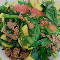 ニラが余っていたので一緒に加えました。ズッキーニの食感がたまりません(≧∀≦)