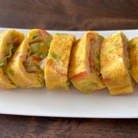 カニカマと長ねぎの卵焼きはいかがでしょうか。カニカマがたっぷりはいった、中華風の卵焼きです。見た目も華やかなので朝ごはんにおすすめですよ。卵焼きのレパートリーに困ったら、ぜひ作ってみてくださいね。