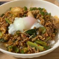 - 8 野菜がしんなりしたら5を加えて、中火で全体に煮絡めたら完成です。ごはんにかけて、お好みで糸唐辛子を添えてお召し上がりください。