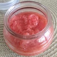 - 2 大きめの耐熱容器に1、低カロリー甘味料、レモン汁を加え混ぜ合わせます。ラップをして600Wの電子レンジで2分加熱をします。