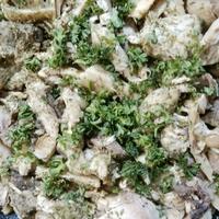 - 5 サラダ菜を敷いたお皿に盛り付け、付け合せを添え、パセリを散らして完成です。お好みでレモンを絞ってお召し上がりください。