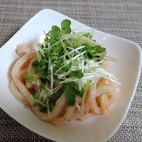 - 準備 明太子は薄皮から外し、ほぐしておきます。 かいわれ大根は根元を切り落としておきます。 うどんはパッケージの表記通り解凍し、加熱しておきます。