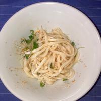 貝割れが無く、豆苗をチンしてから混ぜた。