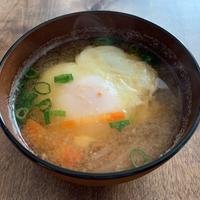 味噌汁に卵。最強のヘルシー汁ですね。いいレシピ覚えました。