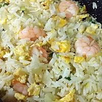 - 4 中火で炒め、エビに火が通ったら溶き卵を入れてさっと炒め、半熟状になったらごはん、(A)を加え、5分程加熱し、全体に味がなじんだら火から下ろします。