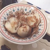 - 3 熱いうちに取り出し、柔らかくなったお餅にミルクチョコレート、クリームチーズを入れ包み、ココアパウダーを満遍なくつけて出来上がりです。