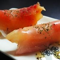 生ハムの塩気と桃の甘みが絶妙なバランスで、ワインに最高の相性のおつまみです。クリームチーズのミルキーな風味が加わり、まるでイタリアンレストランの一品のような上質な味わいに。切って巻くだけの簡単な工程なのに、見た目も華やかで、パーティーやおもてなしにもぴったり。桃は少し熟したものを使うと、より味の調和が良くなりますよ。