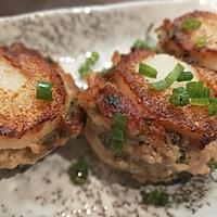 刻み生姜、おろし生姜、おろしニンニクをプラスしたので、餃子感覚でいただきました。サックサクでとても美味しかったです♪ 大葉と万能ねぎもタネに混ぜこみ。