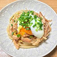サラダチキンと温泉たまごの 鶏うどん レシピ・作り方
