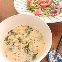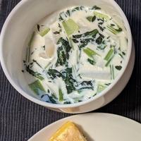 春菊とカブを使ったミルクスープのご紹介です。春菊の風味とカブのほくほくとした食感が美味しいスープです。牛乳とコンソメでほっこりと優しい味付けになっていますので、寒い日の一品にぜひ試してみてくださいね。