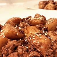 - 5 豚ひき肉の色が変わったら1を入れ中火で炒めます。