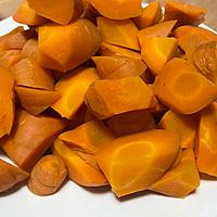 - 4 2、水を入れてラップをかけ、にんじんがやわらかくなるまで600Wの電子レンジでさらに2分加熱します。