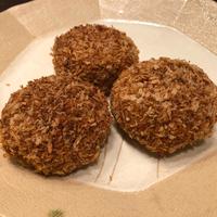 合挽き肉がなくて、玉ねぎとベーコンをみじん切りして入れました☆それでも十分美味しく出来あがり、大満足でした(*^o^*)次回は合挽き肉で作ります✨揚げてないのにサクッとした食感があるのがいいなぁと思いました♡