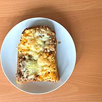 - 3 食パンに1と2を格子状にのせ、ピザ用チーズをかけます。