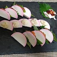塩加減は、梅肉の量で調整してください。 白色のかまぼこで作りましたが、紅白で作ると華やかになりますよ。