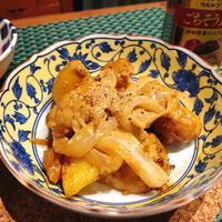 - 4 サラダ油をひいたフライパンを中火に熱して2を焼き、火が通ったら弱火にして1、3を加えて焼き絡め、全体に味がなじんだら火から下ろします。