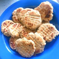 - 4 フライパンを中火で熱し、3を大さじ1杯ずつ並べ、フォークで押さえます。5分程焼いたら裏返し、更に5分程焼いて両面きつね色になったら火から下ろします。