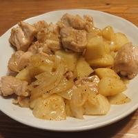 ニンニクの香ばしい風味と黒胡椒のピリッとした刺激が食欲をそそる一品です。鶏もも肉はジューシーで柔らかく、長ネギやじゃがいもを加えることでボリュームアップ。じゃがいもはホクホクの食感で、お肉の旨みとよく合います。大人向けの味付けですが、後がけで調味料を加えることで、お子様でも楽しめます。おつまみやご飯のお供として大活躍間違いなしの一品です。