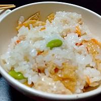 - 準備 米は洗って30分以上浸水させ、水気を切っておきます。油揚げは油抜きをしておきます。にんじんは皮をむいておきます。コーンの水煮は汁気を切っておきます。枝豆は薄皮を取り除いておきます。