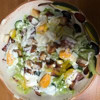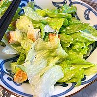 クルトンもドレッシングも手作りで大満足のシーザーサラダの出来上がり