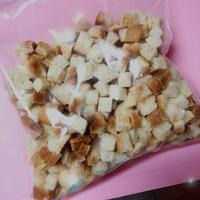 食パン🍞を沢山もらったのでクラシルで検索してクルトンを作りました。簡単であっと言う間に出来ました。
