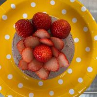 スポンジを丸型で型どって二段ケーキを作りました。とても簡単で失敗したことありません!ぜひまた作りたいです♪14分焼いてアルミホイルをかけてからプラス2分焼くといい感じです^ ^