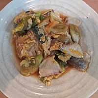 - 5 アジに火が通ったら溶き卵を回し入れ、蓋をして中火で10秒ほど加熱し、火から下ろします。