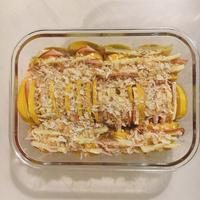 チーズはミルフィーユ状にも使いましたが、上からも少し散らしてから焼くと、表面のトロトロチーズでより美味しそうに♥