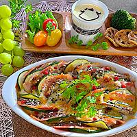 「ズッキーニとハムチーズのミルフィーユトマト焼き」の作り方を簡単で分かりやすいレシピ動画で紹介しています。