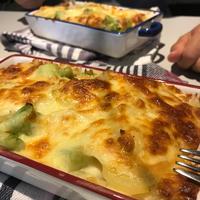 Veganに近い材料になりましたが、お肉無しでブロッコリーとコーン。牛乳→Like milkに変更。コーンを入れたら甘味が増してグラタンぽさが減ってしまいました。次回からは気をつけます
