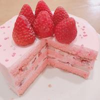 スポンジもピンクでイチゴ味のクリームにしてみました