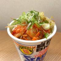 - 4 インスタントカップラーメンに内側の線まで熱湯を注ぎ、蓋をします。表記の調理時間より30秒程短めに置き、添付のスープを入れて混ぜます。