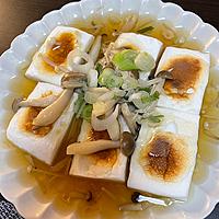 きのこあんでいただく、ふわふわはんぺんの一品です。簡単ですが、きのこからも出汁が出て、優しい味わいになっています。おかずにはもちろん、ご飯の上にかけても美味しく召し上がって頂けます。是非ご家庭でもお試し下さい。