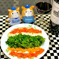 満開菜の花にプラスして、桜🌸をイメージしてスモークサーモンをトッピング🙆♀️このレシピのドレッシング? 卵の白身とマヨネーズとカラシが入ってびっくりするほどちょっとクセのある菜の花を引き立てる最高に美味しいソース?でした🌈💙