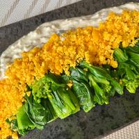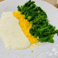 菜の花の味のクセが黄身とソースでマイルドになる。黄身のパサっとした食感もいいアクセント!