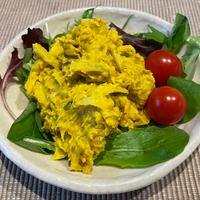 - 7 お皿にフリルレタスを敷き、6を盛り付け、ミニトマトを添えて完成です。