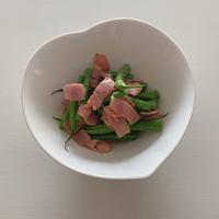 普通のベーコンだと、インゲンしんなりする前にベーコン焦げた!夫に少し辛いって言われた。
