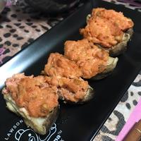 しいたけの笠に明太マヨソースを詰めて焼いてみました。しいたけを焼くことで染み出した旨味を明太マヨソースが余すことなく吸っているので、とっても美味しいですよ。お酒のおつまみにもおすすめですよ。簡単に作れるので、ぜひお試しくださいね。