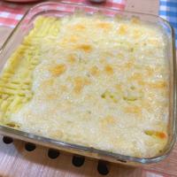 - 5 耐熱皿に2、4の順番に盛り付け、200℃のオーブンで20分程、焼き色が付くまで焼いて出来上がりです。