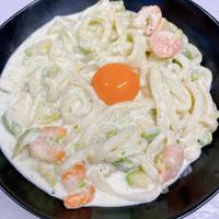 えびとアボカドのカルボナーラうどん レシピ・作り方