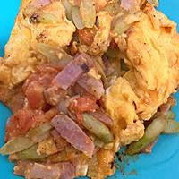 - 5 4に溶いた卵を加えて中火で周りが固まってくるまで加熱したら全体をかき混ぜて完成です。