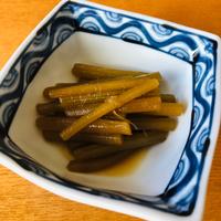 筋取りや下処理に手間はかかりますが、ふきの旨みと醤油の香ばしさが見事に調和したご飯が進む一品です。じっくりと煮詰めることで味がしみ込み、ほろ苦さと甘みのバランスが絶妙な仕上がりに。お好みで輪切りの唐辛子を加えてピリ辛にしたり、干し椎茸を一緒に煮込んだりとアレンジも自在。お弁当のおかずやおつまみとしても重宝します。冷めても美味しく、作り置きにも向いています。