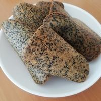 予熱の前から生地をオーブンに入れて焼いたら、せんべいみたいに香ばしく、カリカリな食感になりました。注意点としてはその日のうちに食べることです。次の日にはふにゃふにゃな食感になっています。