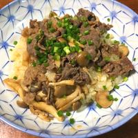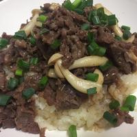 バターライスに、甘い牛肉としめじ炒めがマッチして、おいしかったです!またリピしたい!