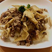 キノコをたっぷり入れ、甘みが苦手なので味醂と蜂蜜を省いてコショウを効かせました。