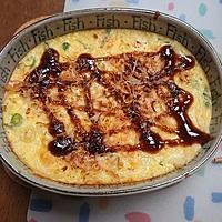 グラタン皿でオープントースターで作りました、すごくふわふわで、簡単で美味しかったです😋レシピの分量は2人分なので全部混ぜ合わせてから、