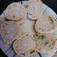 - 5 油揚げに3を塗り、4をのせ、端から巻き、ラップに包んで冷蔵庫に入れて15分程休ませます。