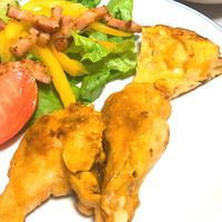 カレー粉にチリペッパーをプラスして、よりスパイシーで辛い味付けです。本場インドではタンドールという窯で焼くタンドリーチキンですが、フライパンでもジューシーに美味しく焼けますよ。レモンをギュっと絞って、お酒のおつまみにも合う一品です。